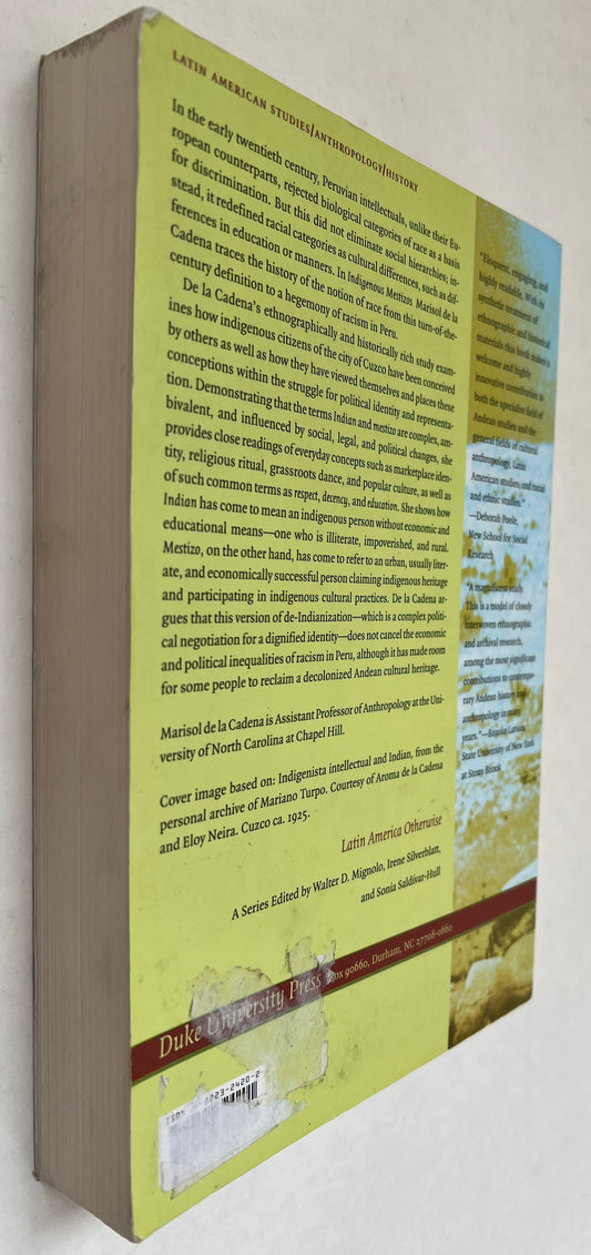 Indigenous Mestizos: the Politics of Race and Culture in Cuzco, Peru, 1919-1991