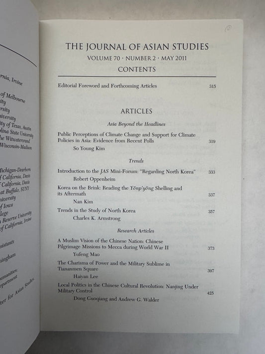 Journal of Asian Studies; Volume 70, Number 2
