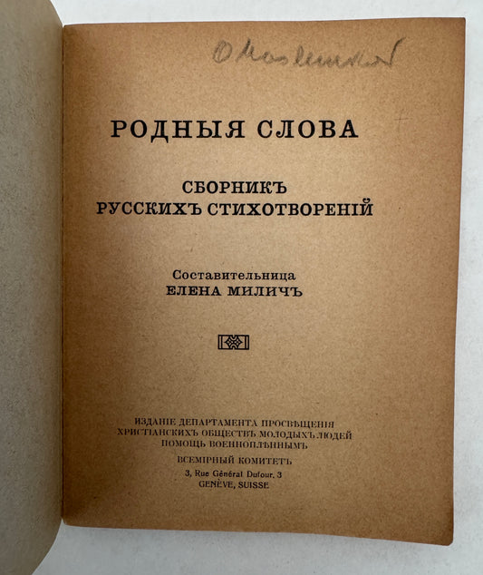 Родныя Слова: Сборник Русских Стихотвореній = Rodnyya Slova... = Rodnyi︠a︡ Slova: Sbornik Russkikh Stikhotvorenīĭ