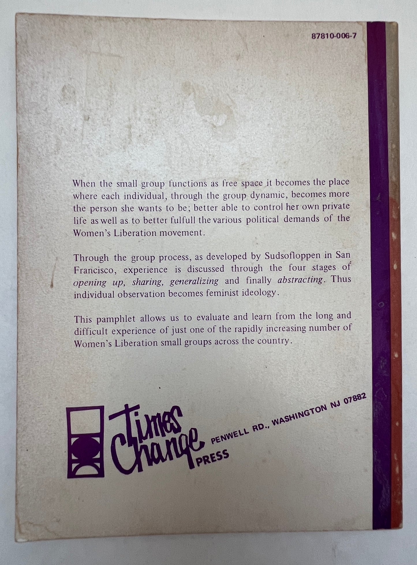Contents: Introduction. Sudsofloppen. Free space. The small group process. The individual and the small group. The women's movement. The study plan. The Sudsofloppen Paper. // ''Chude Pamela Parker Allen, also known as Pamela Parker, Chude Pamela Allen, Chude Pam Allen, Pamela Allen, and Pam Allen (born 1943) is an American activist of the civil rights movement and women's liberation movement. She was a founder of New York Radical Women."—Wikipedia