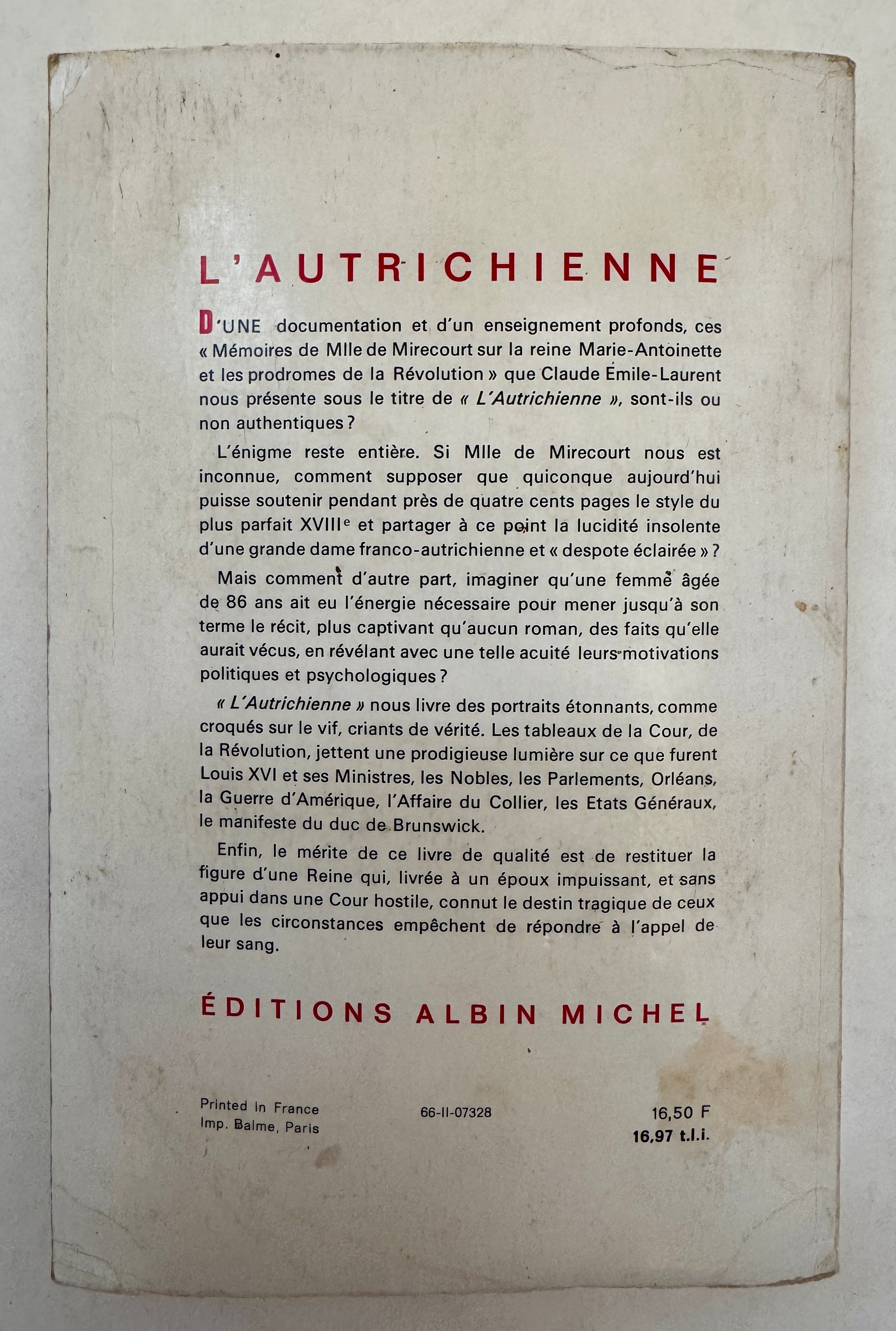 l'Autrichienne; Mémoires Inédits de Mlle. de Mirecourt Sur la Reine Marie-Antoinette et Les Prodromes de la Révolution