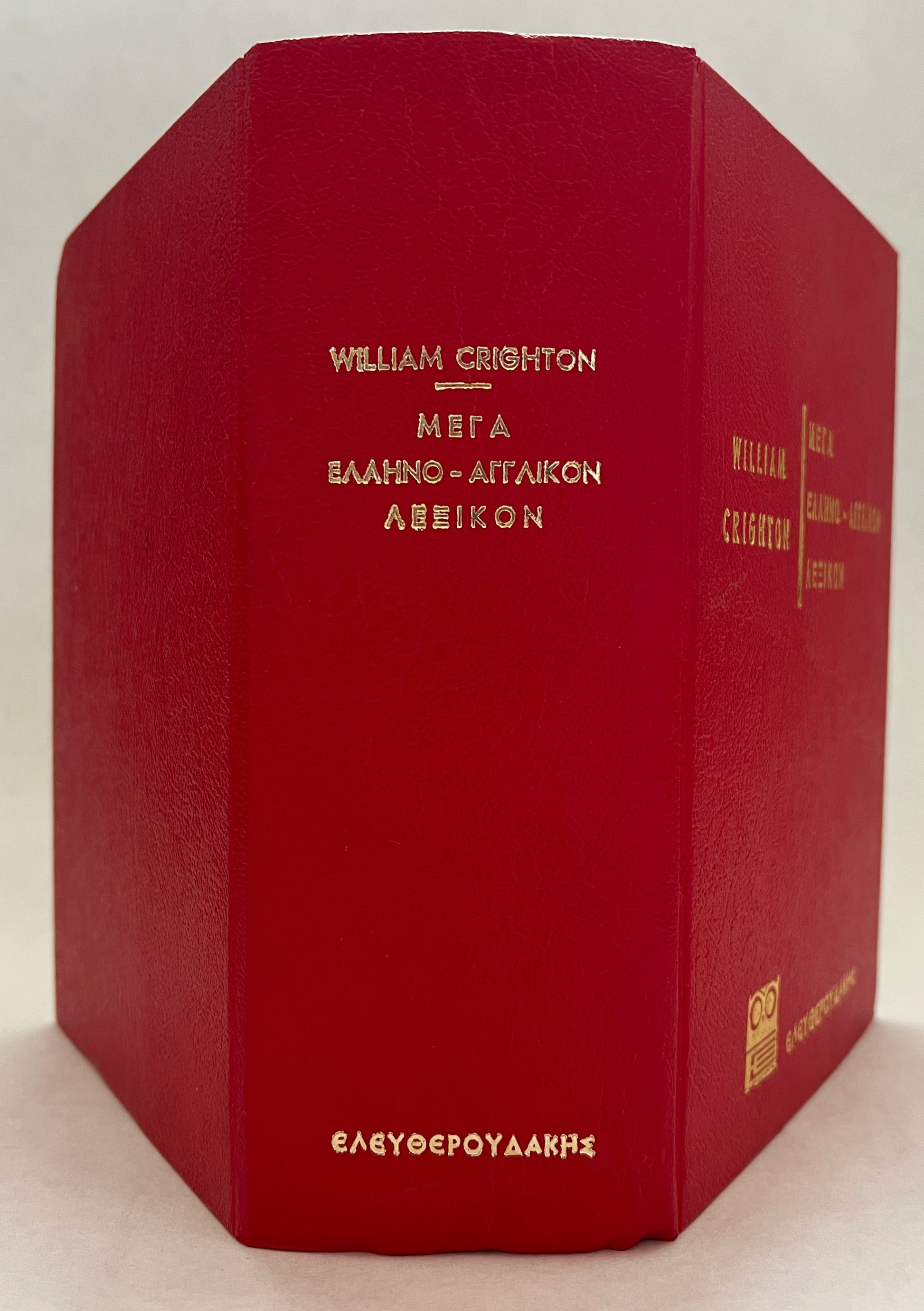 An impressively large Greek- English dictionary. William Crighton was a nineteenth-century Scottish classicist and educator who served as the coordinating editor of the Mega Hellēno-Anglikon Lexikon, published in Athens as a collaborative Greek–English dictionary explicitly produced “through the cooperation of a staff of specialists.” Crighton served as editorial mediator, organizing and standardizing contributions from multiple scholars and adapting established philological authorities—especially Liddell–Scott and German lexicographical traditions—to the educational needs of the modern Greek state. His importance lies in this bridging role between Anglophone classical scholarship and Greek academic reform, with the lexicon standing as a representative product of late-nineteenth-century collaborative philology rather than a personal authorial achievement. | **Somewhat bulky item. Additional shipping fees may be requested for expedited, priority, or international orders.**