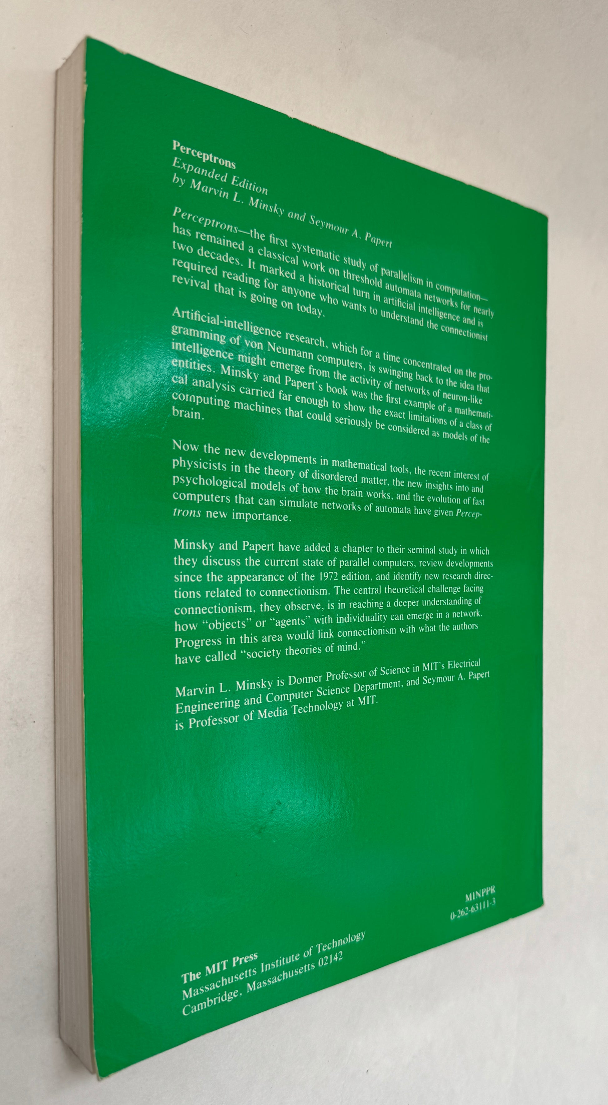 "This book is the center of a long-standing controversy in the study of artificial intelligence. It is claimed that pessimistic predictions made by the authors were responsible for a change in the direction of research in AI, concentrating efforts on so-called "symbolic" systems, a line of research that petered out and contributed to the so-called AI winter of the 1980s, when AI's promise was not realized." --Publisher