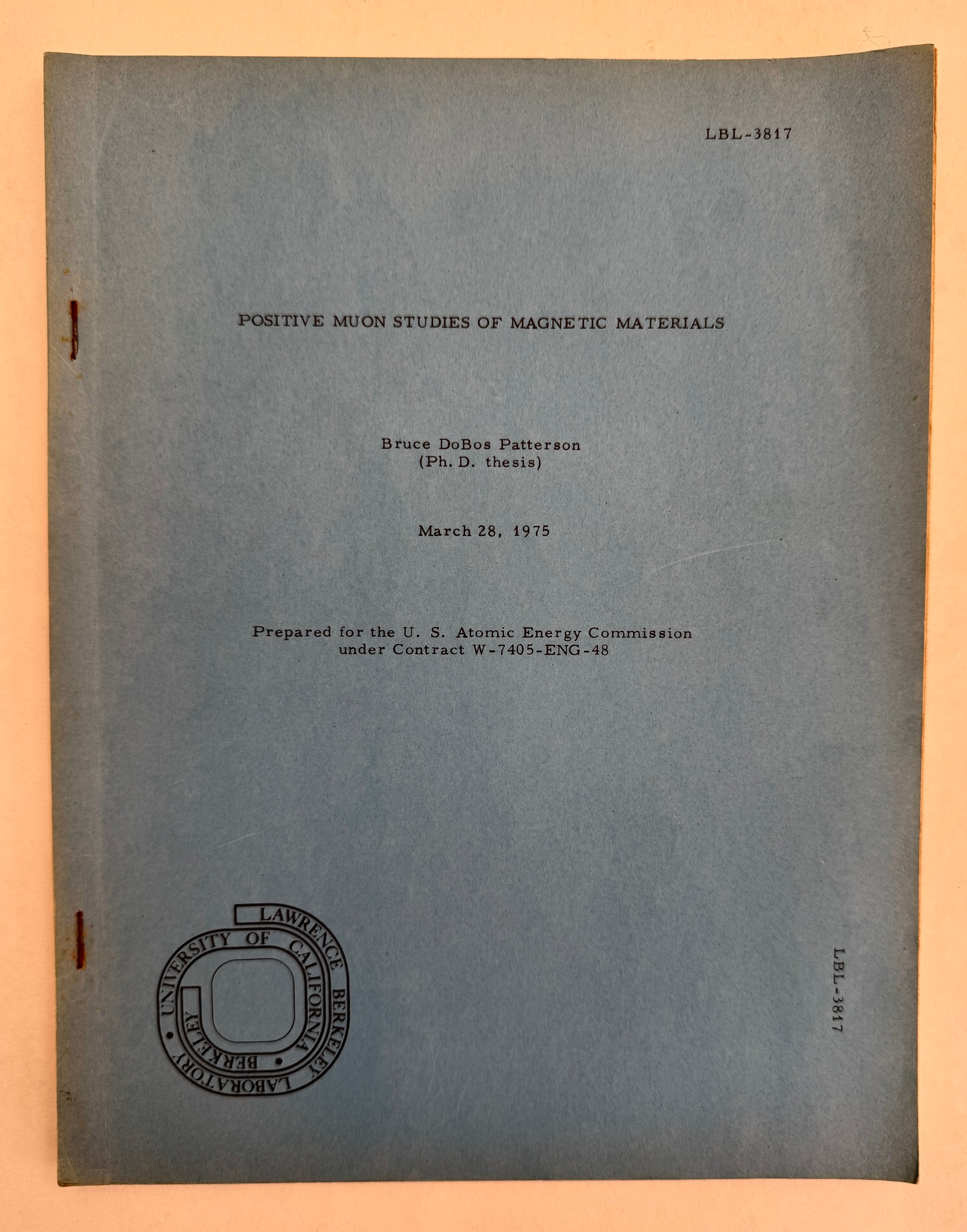Berkeley, CA: Lawrence Berkeley Laboratory ; UC Berkeley, 1975. First Edition. Quarto with blue paper covers; stapled; illustrations; 105p; 28cm Some sunning and light wear to wraps and foxing to edges; staples show some rust; pages are clean and unmarked; very good (-). Stapled wraps.