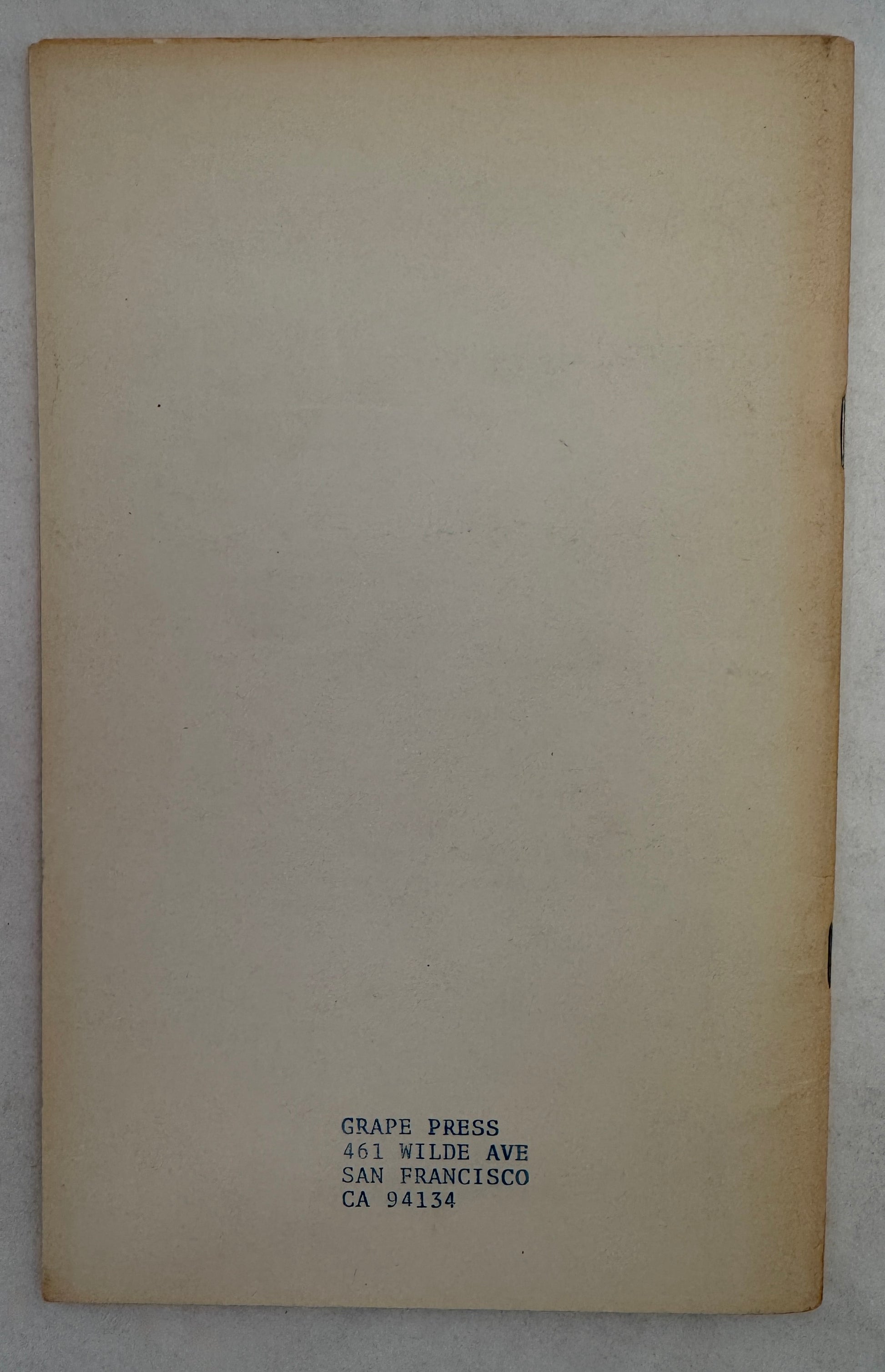San Francisco: Grape Press, 1973. First Edition. 30 unnumbered pages; 22 cm Very good (-); wraps a tad sunned; pages clean and bright. Paperback.