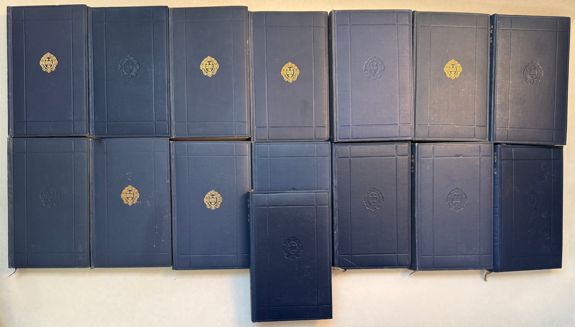 London: Oxford University Press, 1924-1932; (chiefly 1924-29). First series printings (six); second or later printings (remaining nine). Fifteen 16mo volumes in blue boards, gilt titles to spine; 15 cm; page mark ribbons bound in. Mostly fine to near fine (a few with external spotting; see photos); boards smooth, leaves clean, bindings tight. Some of the original sewn-in silk markers frayed or broken and shortened. Hardcover.