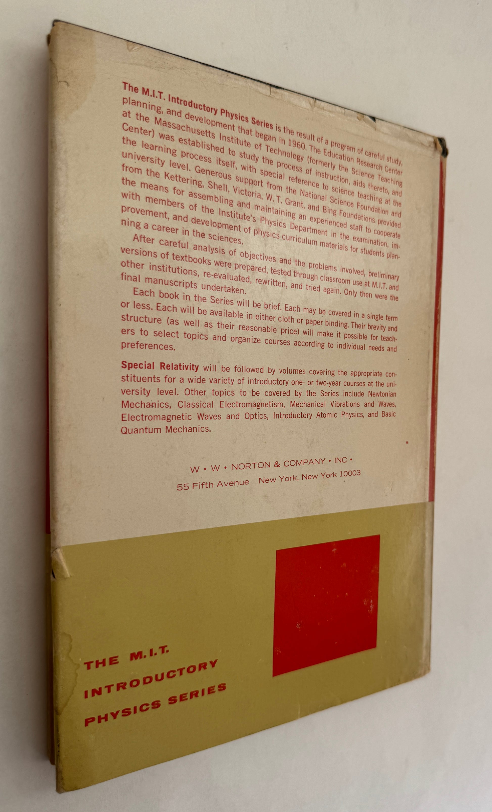 Part of the M.I.T. Introductory Physics Series. The book opens with a description of the smooth transition from Newtonian to Einsteinian behaviour from electrons as their energy is progressively increased, and this leads directly to the relativistic expressions for mass, momentum and energy of a particle.Contents: Departures from Newtonian dynamics. Perplexities in the propagation of light. Einstein and the Lorentz-Einstein transformations. Relativity and the measurement of lengths and time intervals. Relativistic kinematics. Relativistic dynamics. collisions and conservation laws. More about relativistic dynamics. Relativity and electricity.