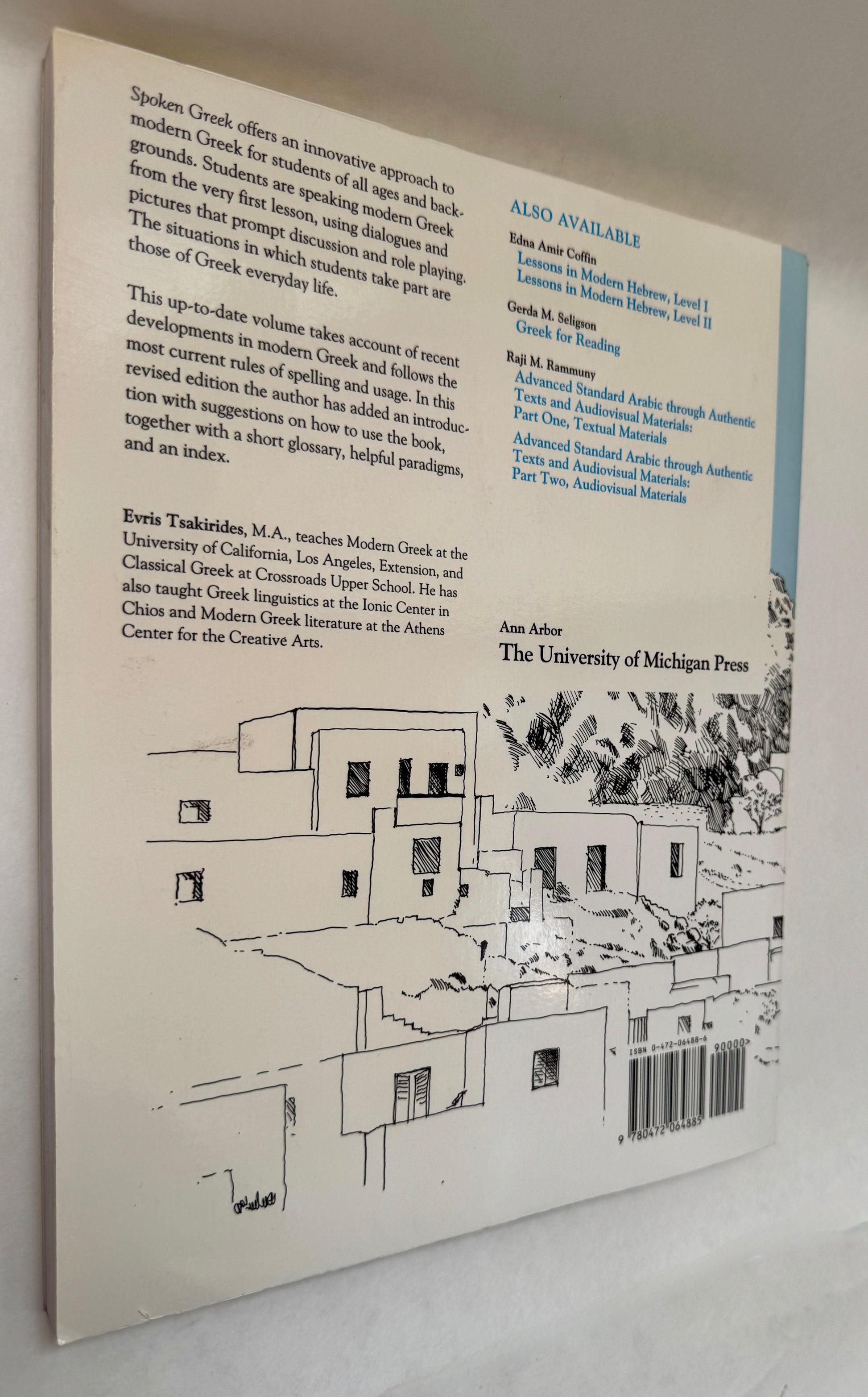 "Spoken Greek offers an innovative approach to modern Greek for students of all ages and backgrounds. Instead of presenting static exercises and paradigms that give students only a passive knowledge of this vivid language, Spoken Greek offers dialogues and pictures that prompt discussion and role playing. Students are speaking modern Greek from the very first lesson, and the situations in which students take part are those of Greek everyday life, not contrived grammatical abstractions."--BOOK JACKET. "This up-to-date volume takes account of recent developments in modern Greek and follows the most current rules of spelling and usage. In this revised edition the author has added an introduction with suggestions on how to use the book, together with a short glossary, helpful paradigms, and an index."--BOOK JACKET