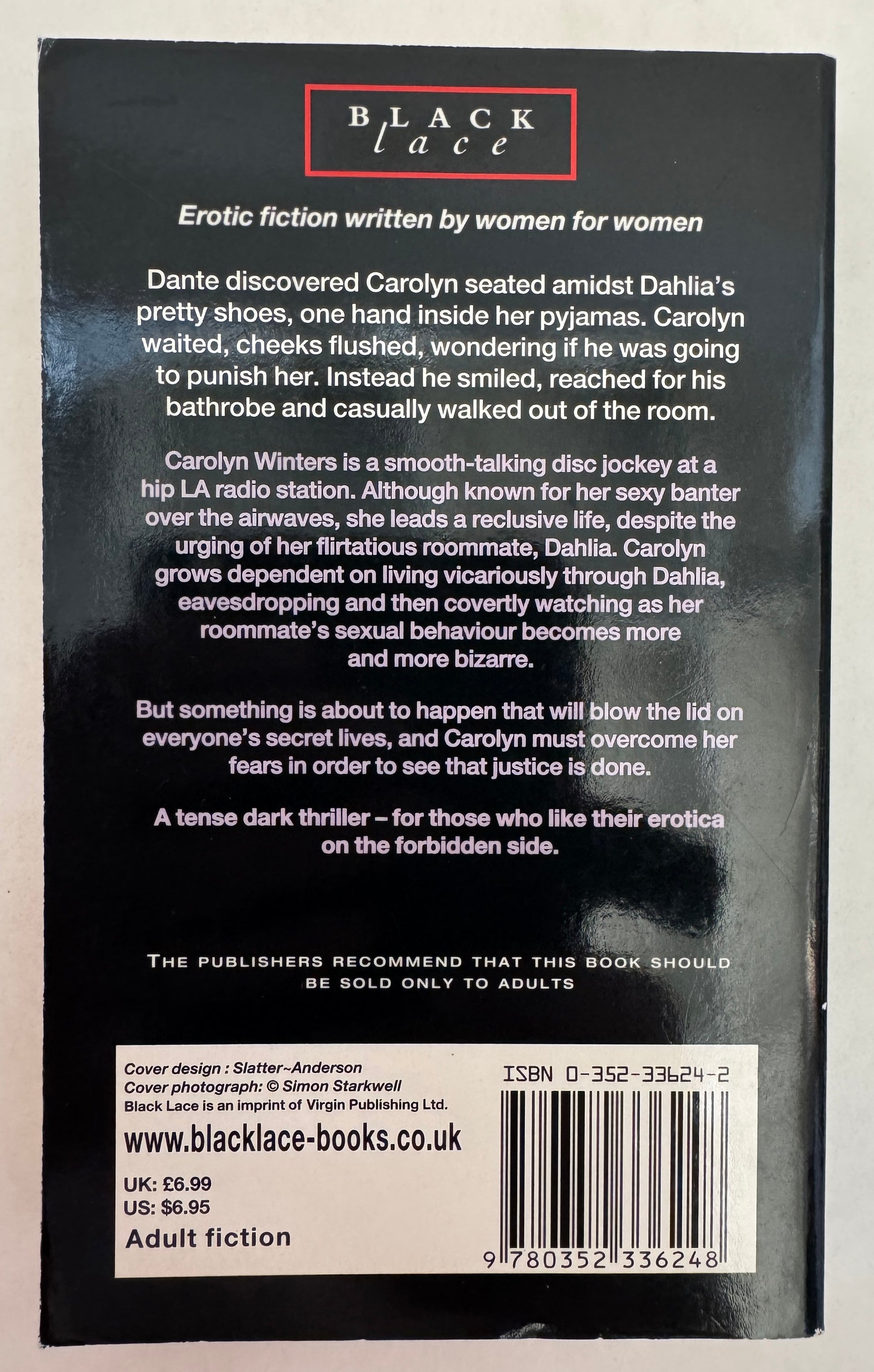 London: Black Lace, 2001. First Edition. 16mo with black and red pictorial wraps; 272 pages; 18 cm Near fine with mild external rubbing. Paperback. ISBN: 9780352336248, 0352336242
