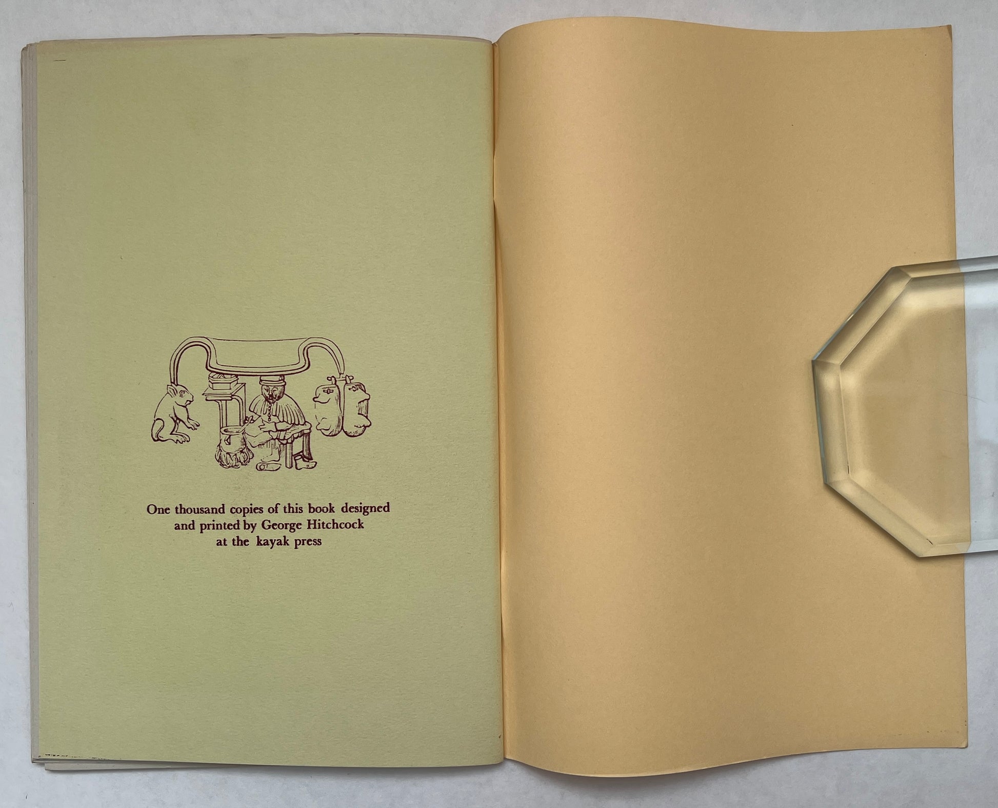 Santa Cruz, California: Kayak Books, 1970. Limited Edition. Octavo in yellow wraps; staple-bound; 51 unnumbered pages: color illustrations; 26 cm Very good(+); stapled wraps slightly askew from textblock; faint chipping to edge of half title page; inked gift inscription to half title page,else pages clean and crisp; binding tight. Stapled wraps.