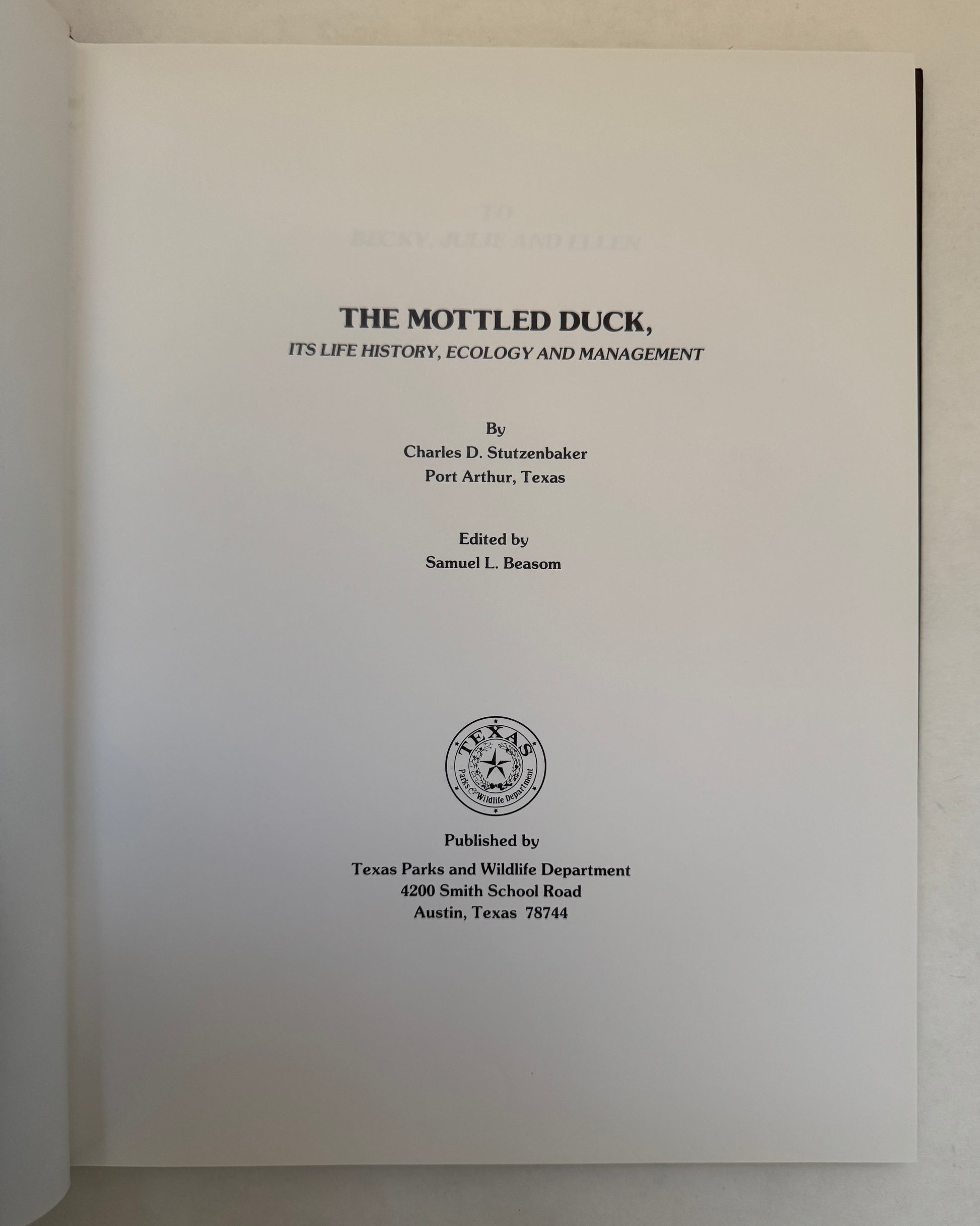 Presumably the deifnitive work on the mottled duck. Highly detailed. Issued by Texas Parks and Wildlife Department. | **Somewhat large, heavy item. Additional shipping fees may be needed for expedited or international orders. Please inquire**