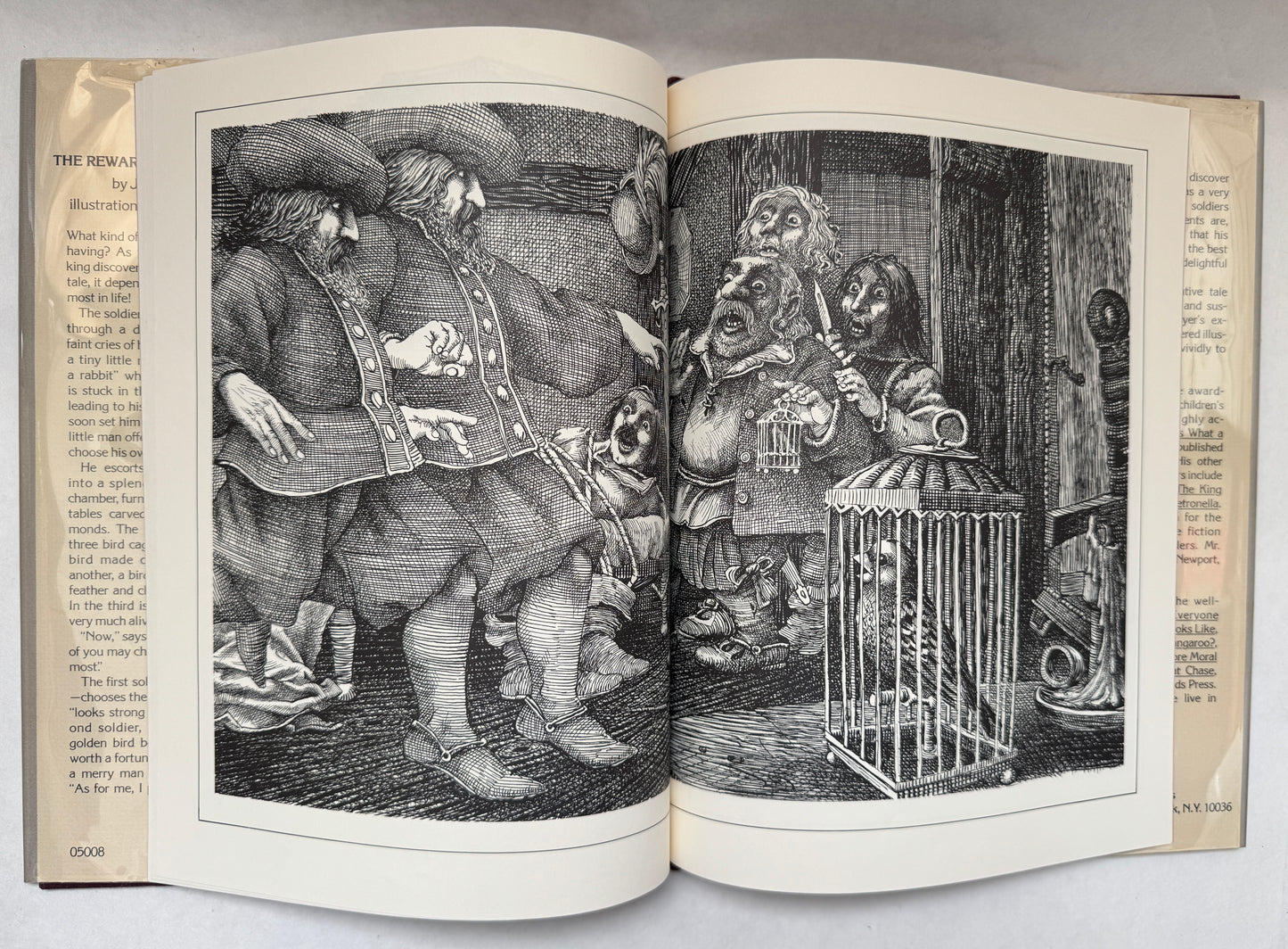 Out of print. Beautiful illustrations in a large format. "What kind of reward is trul worth having? As three soldiers of the king discover in this charming fairy tale, it depends on what you value most in life!" --Jacket. // Amour, Birds, Birds Juvenile fiction, Bonté Romans, nouvelles, etc. pour la jeunesse, Contes de fées, Dust jackets (Bindings) 1977, Fairy tales, Fairy tales 1977, Fiction, Generosity, Generosity Juvenile fiction, Générosité Romans, nouvelles, etc. pour la jeunesse, Juvenile works, Kindness, Kindness Juvenile fiction, Kings and rulers, Kings and rulers Juvenile fiction, Love, Magic, Magic Juvenile fiction