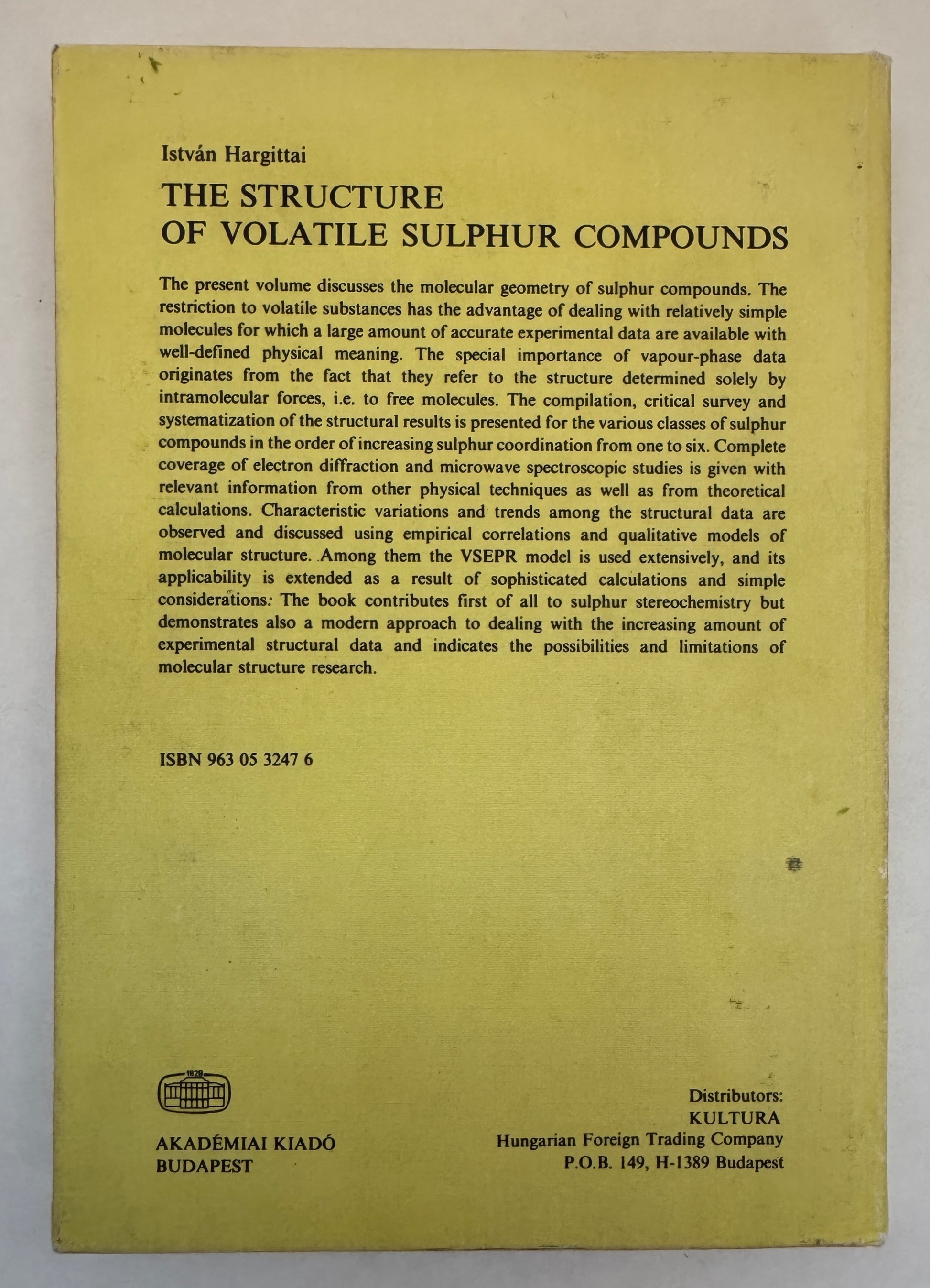"Revised English edition of 'Illékony kénvegyūletek szerkezete' in the series of 'A kémia újabb eredményei' published by Akadémiai Kiadó, Budapest" | Chemistry