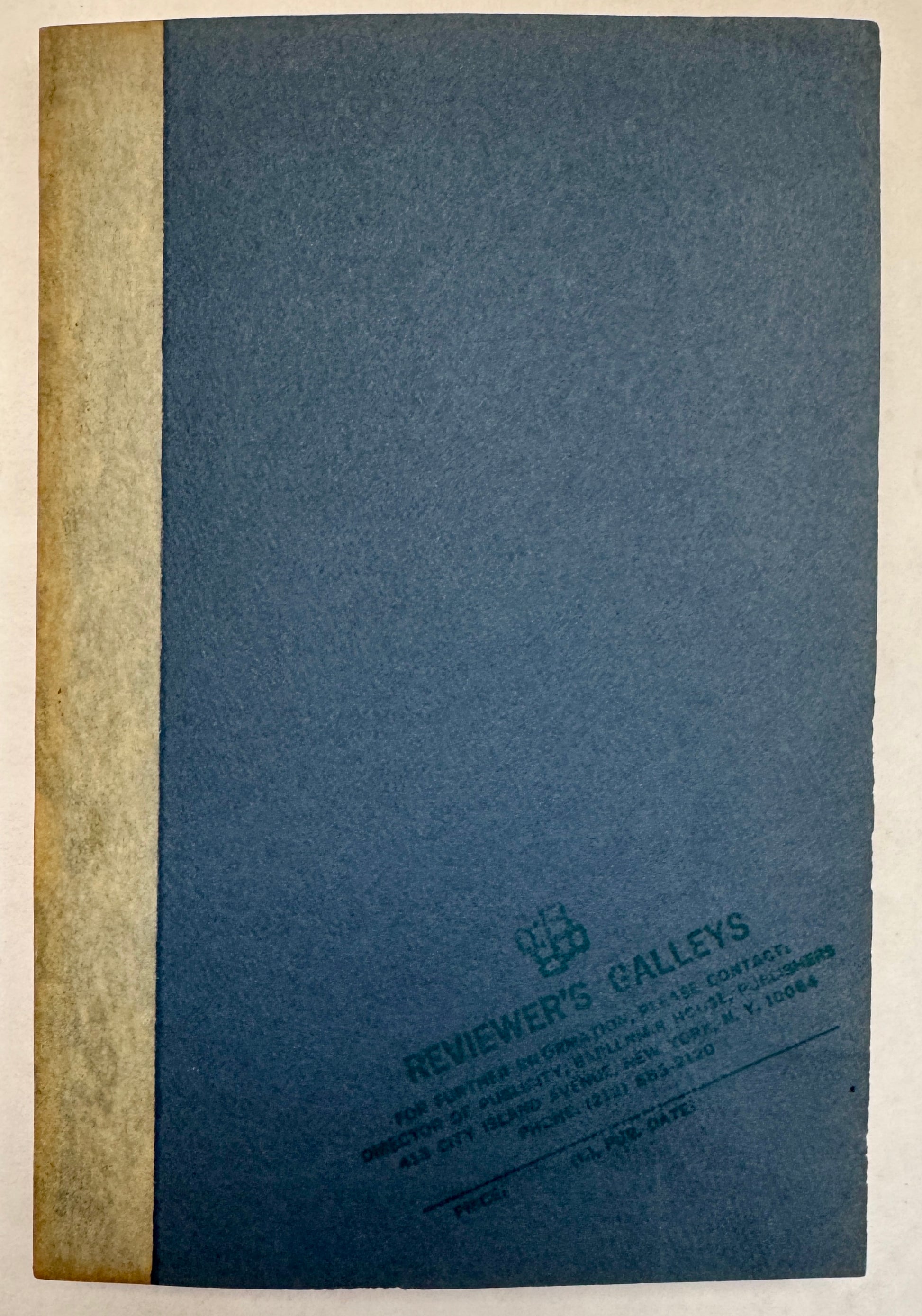 New York: Barlenmir House, 1977. Galley proof. Octavo with dark blue paper wraps and tan spine; 150 pages: illustrations; 22 cm Near fine; a tad sunned to wraps but spotless within. Paperback. ISBN: 0879290463