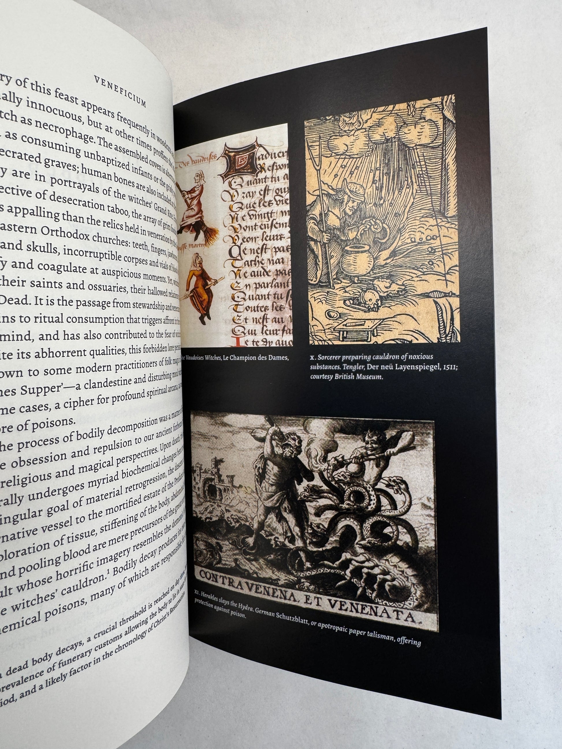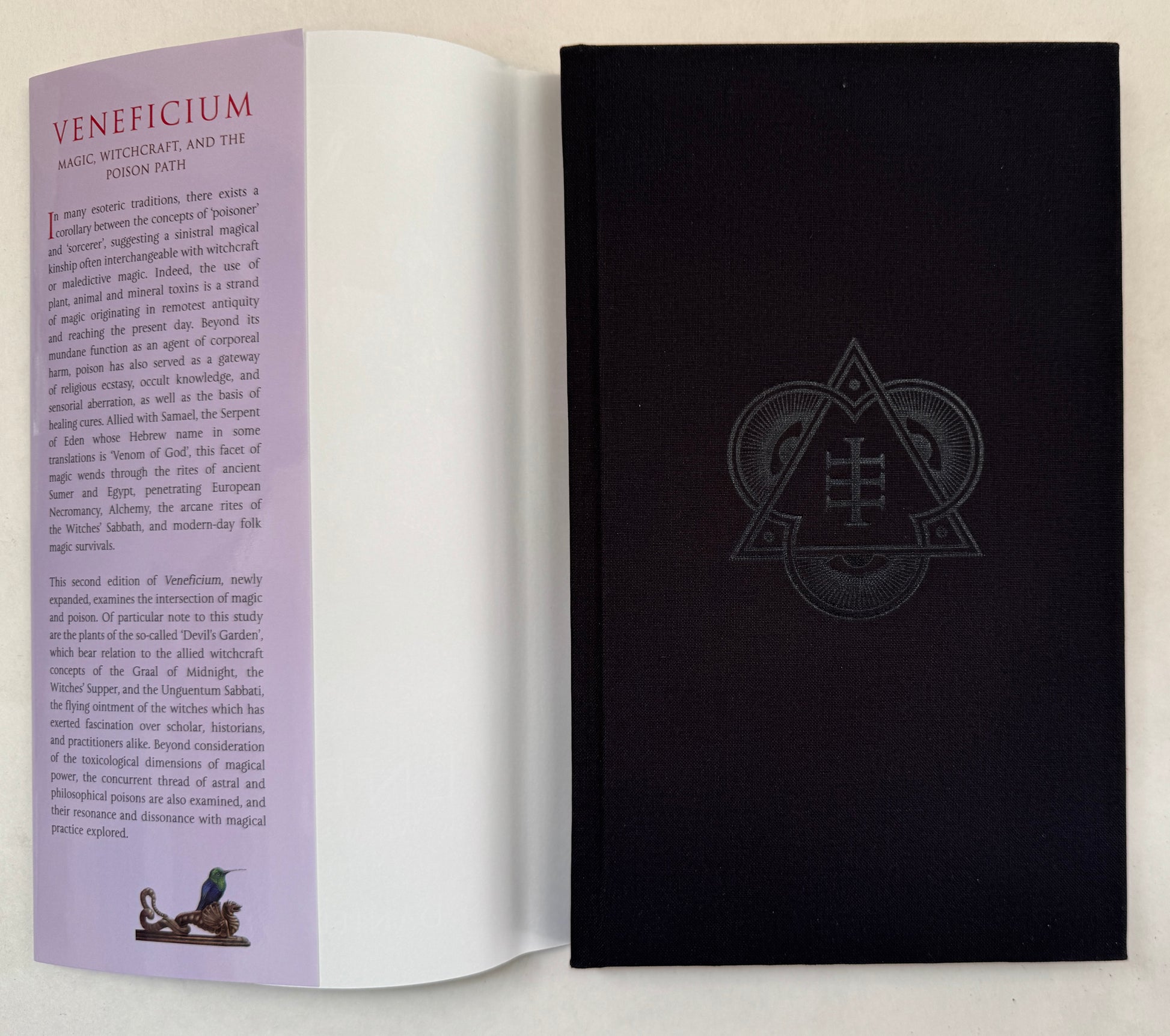 Uncommon, especially in this second revised editoin. Stated limitation of 750 trade cloth copies. "In many esoteric traditions, there exists an iconic or linguistic corollary between the concepts of 'poisoner' and 'sorcerer', suggesting a sinistral magical kinship often interchangeable with witchcraft or maledictive magic. Indeed, the use of plant, animal and mineral toxins is a strand of magic originating in remotest antiquity and reaching the present day. Beyond its mundane function as an agent of corporeal harm, poison has also served as a gateway of religious ecstasy, occult knowledge, and sensorial aberration, as well as the basis of healing cures. Allied with Samael, the serpent of Eden whose Hebrew name in some translations is 'Venom of God', this facet of magic wends through the rites of ancient Sumer and Egypt, penetrating European Necromancy. Alchemy, the arcane the rites of the Witches' Sabbath, and modern-day folk magic survivals. This second edition of Veneficium, newly expanded, examines the intersection of magic and poison, collecting the authors early essays on this magical kinship, and exploring the toxicological dimensions of occult power." —Publisher