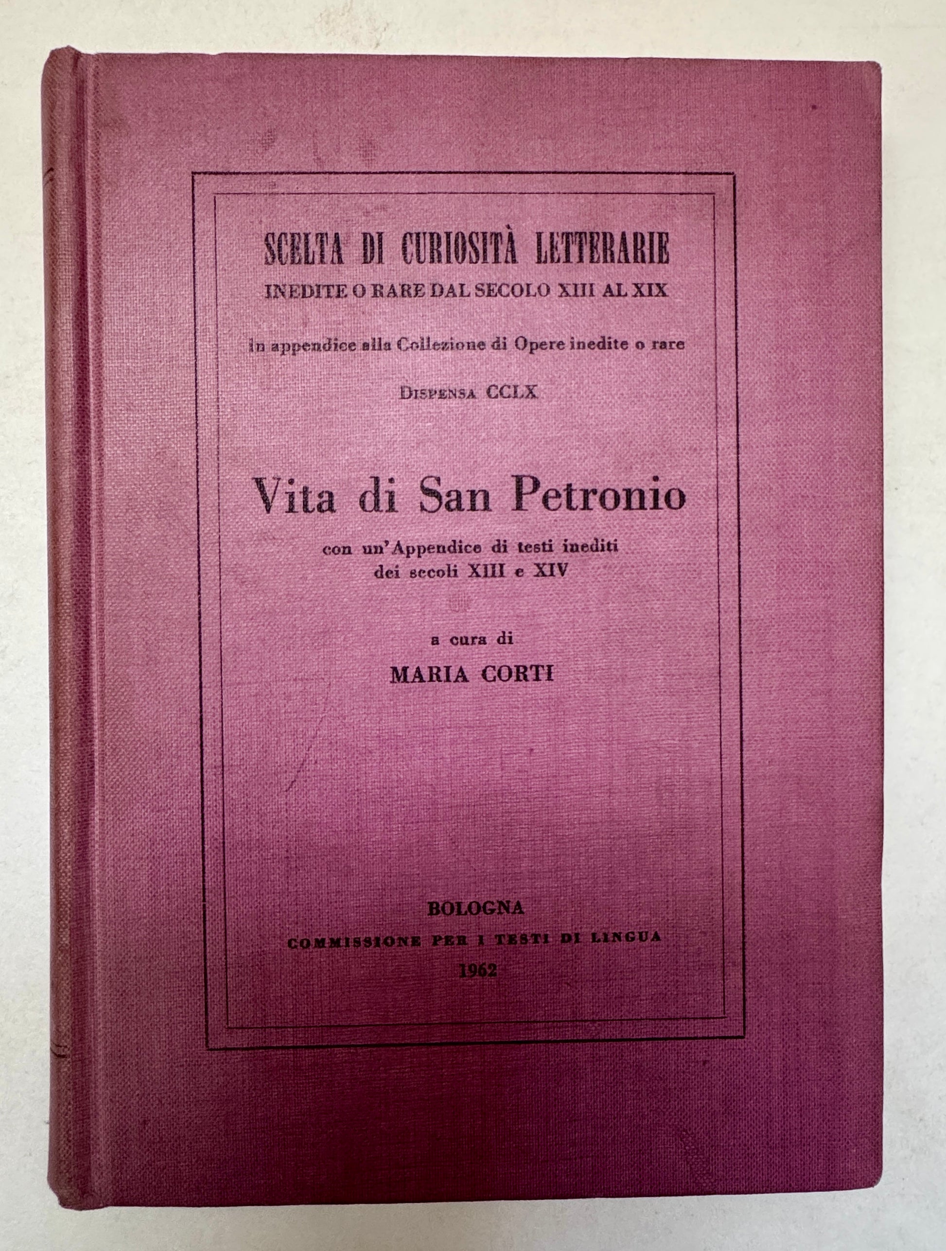 Bologna: Commissione per i testi di lingua, 1962. 12mo with purple cloth boards; [7], x-lxxxviii, 113, [4] pages; index; 18 cm. Very good (+); some mild edgewear to boards; head and foot of spine gently bumped/frayed; pages are toned at extremities but clean and tightly bound. Hardcover.
