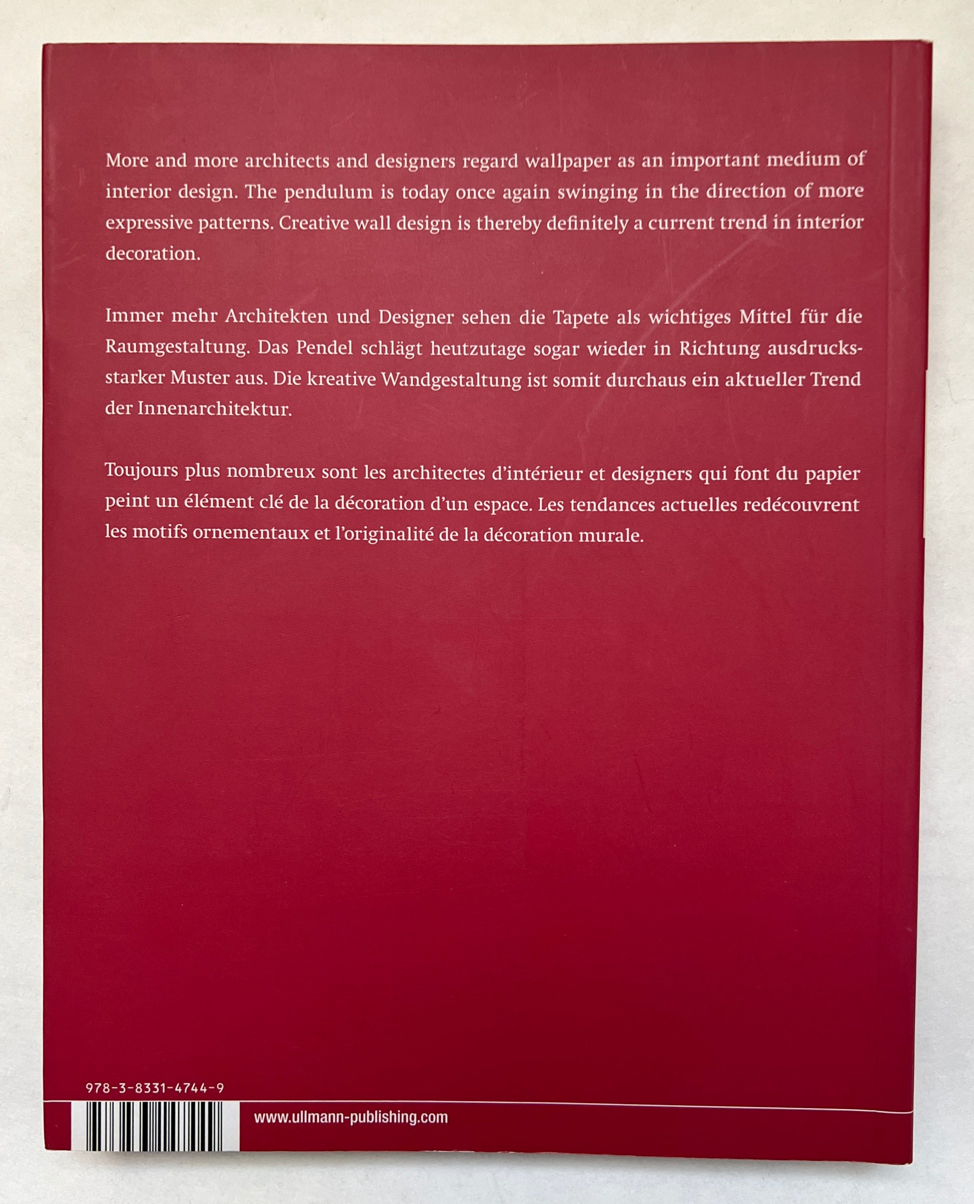 In a partial velvet wallpaper binding. The only book we've ever seen bound thusly. "After an amazing abundance of colours and form in the 1960s, high-quality wall covers were increasingly substituted by the ubiquitous woodchip paper. In the meantime, though, wallpaper has evolved into one of the trend topics in materials. Traditional manufacturers are now employing renowned designers to create new patterns which are clearly inspired by current trends or even evolve into trend setters of their own right. This book explores wallpaper designs by individual designers and studios around the world. Patterns and textures are brought to life through a vast array of full-colour illustrations throughout" --Publisher