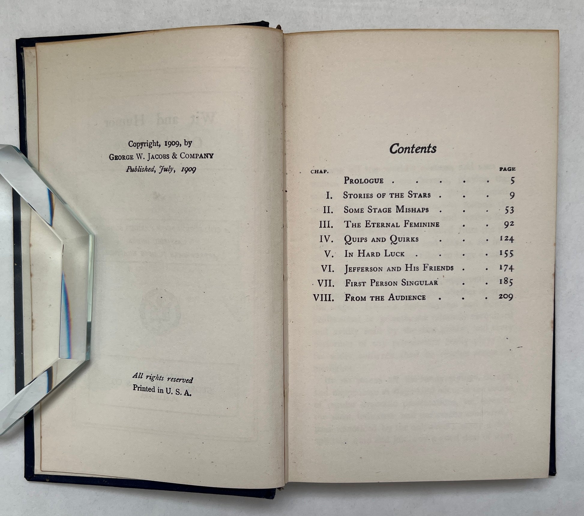 Philadelphia: G.W. Jacobs & Co, 1909. First Edition (presumed; no prior editions or printings cited). 16 mo in navy blue boards, gilt titles; 236 pp: portrait with tissue guard; 16 cm FIne; boards smooth and clean; light foxing to textblock; pages crisp; binding tight. Hardcover.